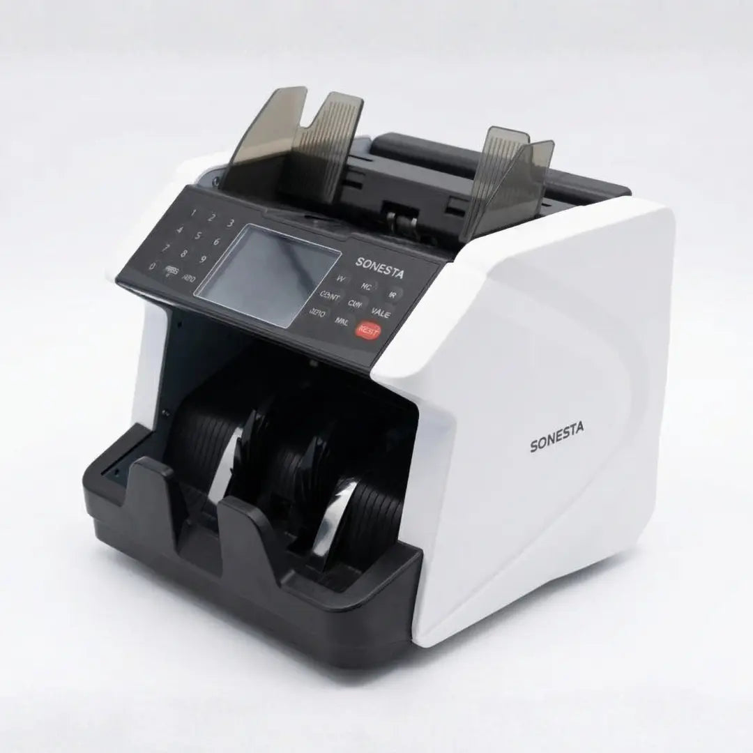 لو حجم الكاش عندك كبير ومحتاج تنجز، موديل Sonesta S613 هو الحل الأقوى. الماكينة دي بتجمع بين السرعة العالية (1200 ورقة/دقيقة) وبين شاشة TFT متطورة، عشان تديك تجربة استخدام مريحة ودقيقة جداً.