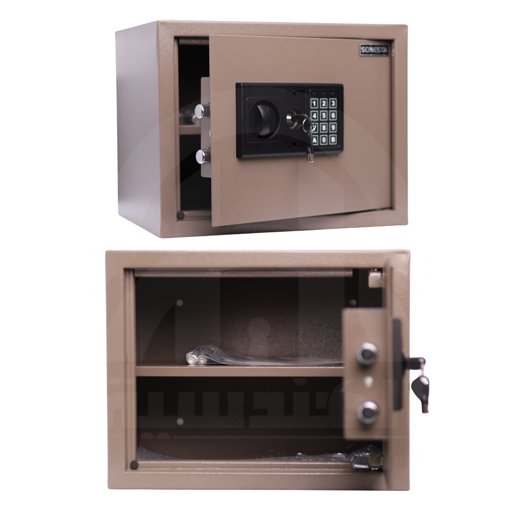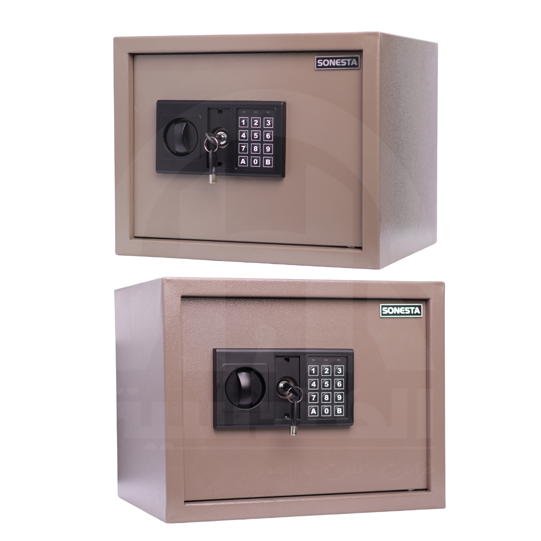 احصل على الأمان الذي تحتاجه مع خزنة سونستا SONESTA بنظام القفل الرقمي البسيط والفعال، مع مفتاحين ماستر احتياطيين ورف داخلي عملي.