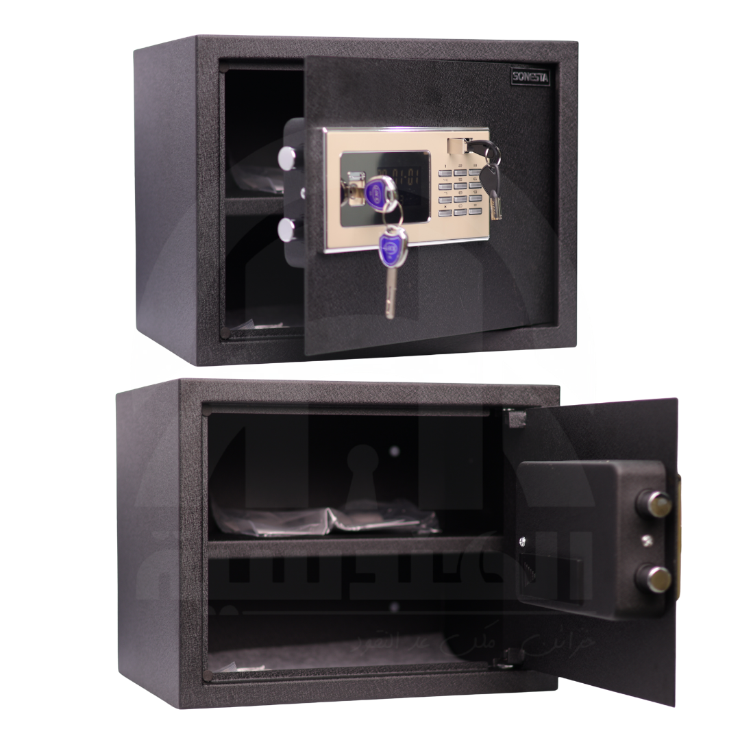 اكتشف مستوى جديد من الأمان مع خزنة سونستا SONESTA التي تجمع بين نظام حماية ثلاثي متطور (كود رقمي + كالون أساسي + كالون احتياطي) وتصميم عصري فاخر بملمس القطيفة الناعمة.