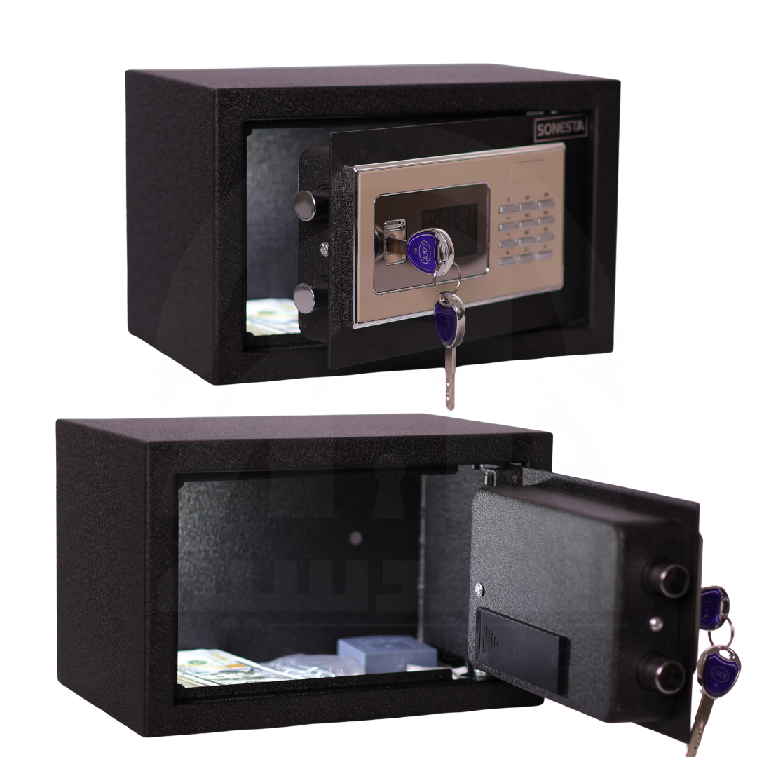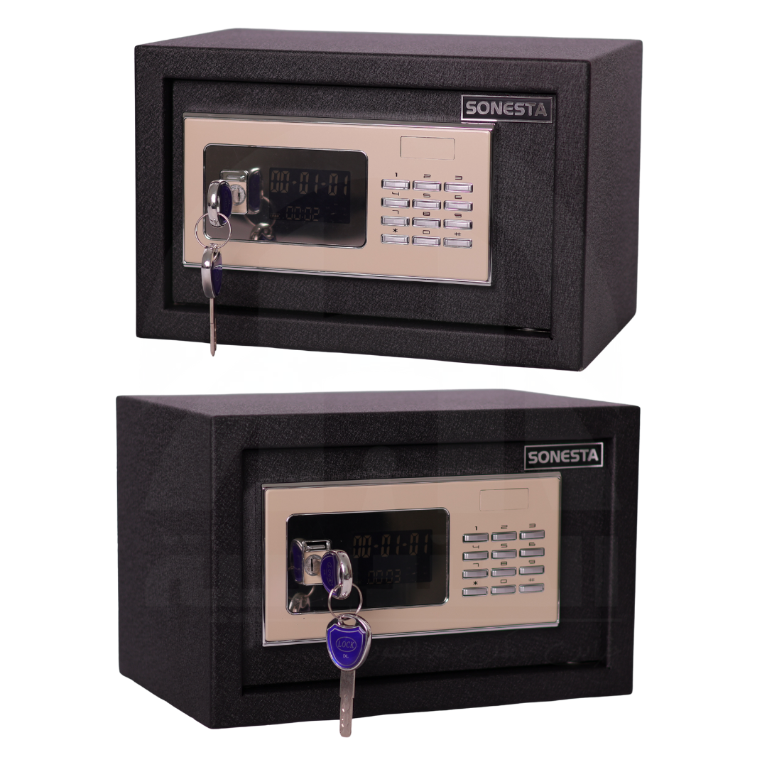 خزنة فندقية ومنزلية ومكتبية راقية من ماركة سونستا SONESTA العالمية، مزودة بأحدث لوحة رقمية عصرية بتصميم شيك وأنيق يضيف لمسة من الفخامة لمكانك.
