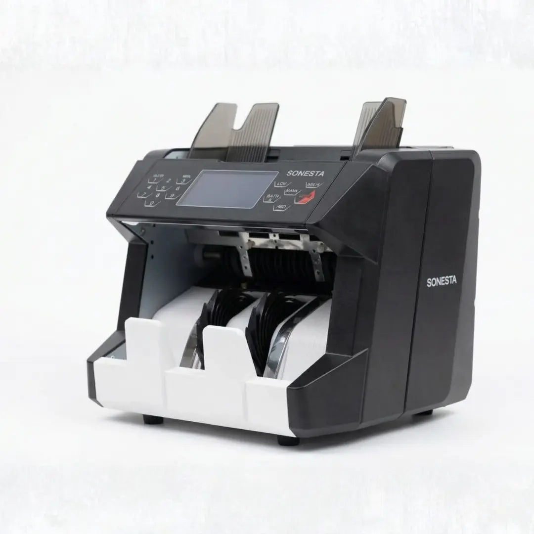 لو بتدور على ماكينة تريح بالك من هم الفلوس المزورة وتوفر وقتك في العد، ماكينة Sonesta S611 من الشركة الهندسية هي شريكك الأول في الشغل. صممت خصيصاً لتناسب الشركات والمحلات اللي محتاجة سرعة وأمان.